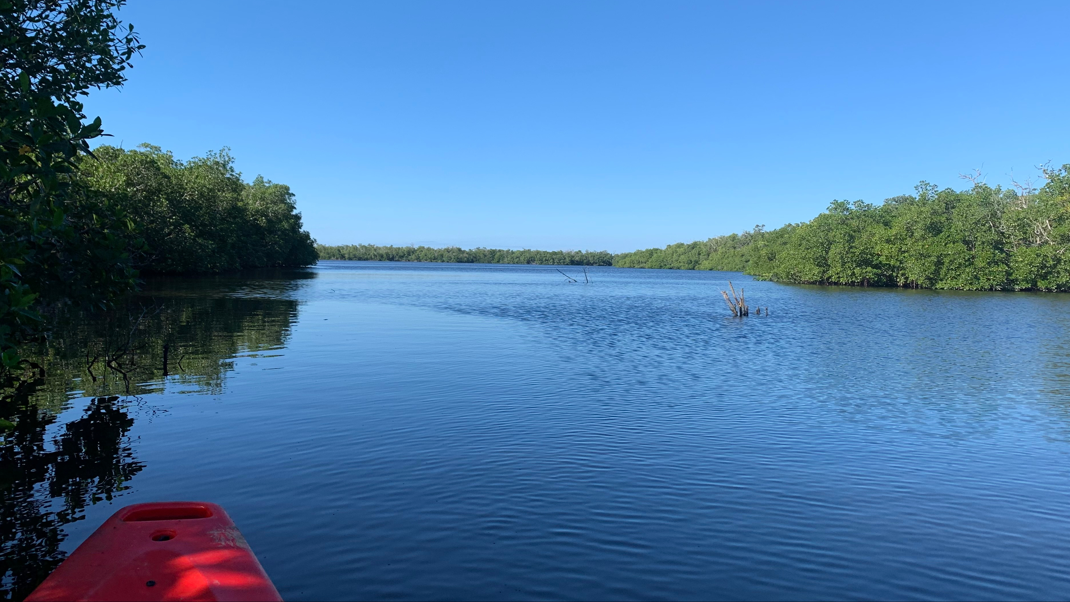I paddled away from the bank of the Caloosahatchee River Regional Park, maneuvering around the cow lilies and into the wide river. A bird called out from a large oak behind me. The sky was clear, and I could just feel a touch of fall in the air. I loved this—Friday morning, and no one else in sight on the river.