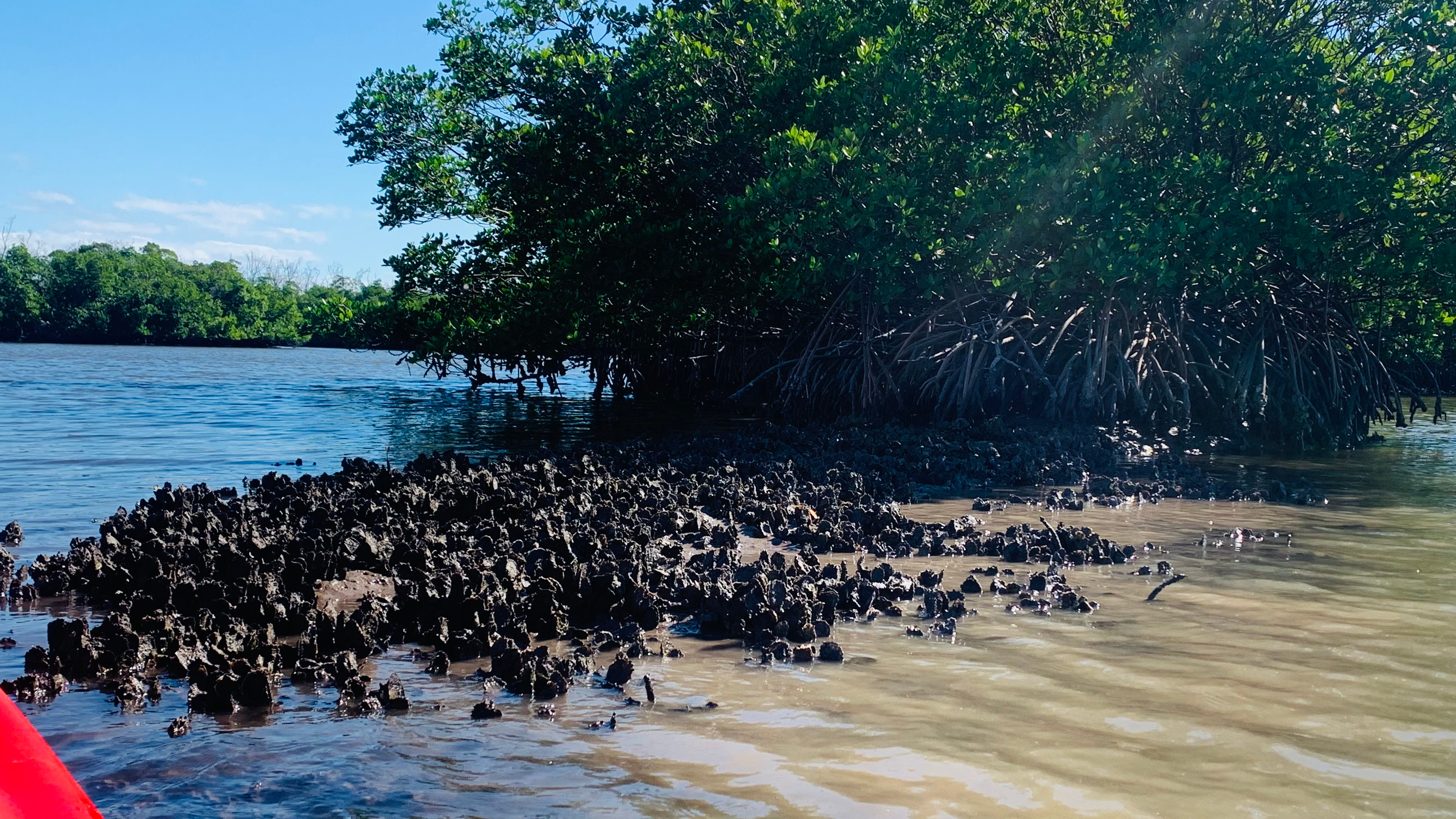 With the uncertainty behind me, I relaxed for the last two hours of paddling, enjoying the cool, dark waterway and the beautiful mangroves. Six hours in, I came upon marker 47 once more and a family hanging out on a low-tide sand bar in the middle of the waterway. I called over to see if I could join them for a few and had an opportunity for a chat and a final stretch before heading into the canopied path and the last hour of my paddle. I arrived back out the outfitter, tired and with very sore arms, seven hours after leaving. Matt had not left at 4:00 as he said he would earlier. He had waited for my return. I think he was nearly as happy as I that I had completed the entire paddle!