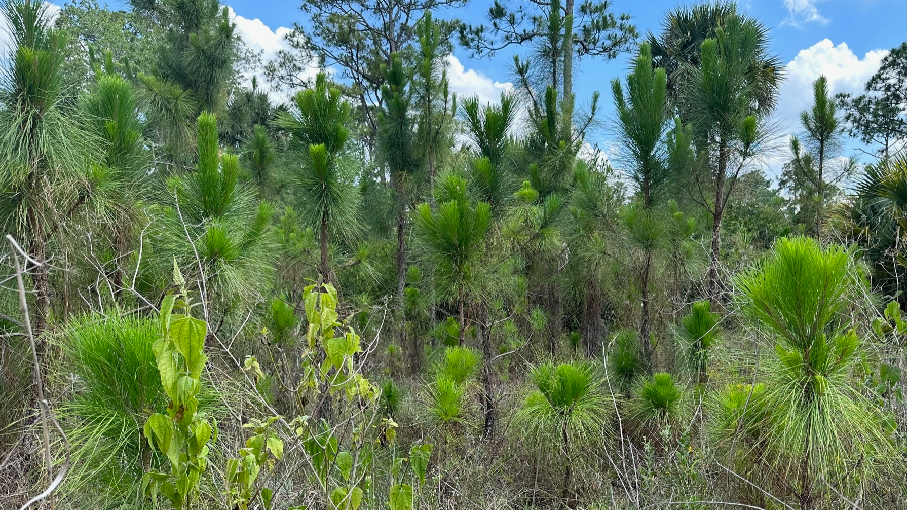 I stepped onto dry trail the last half mile to the canal. I passed a couple medium sized hogs as I made a turn—one black, one brown. They scurried away when they saw me. I stopped under some pines just past the Little Gopher Canal for lunch and a break before heading back.
